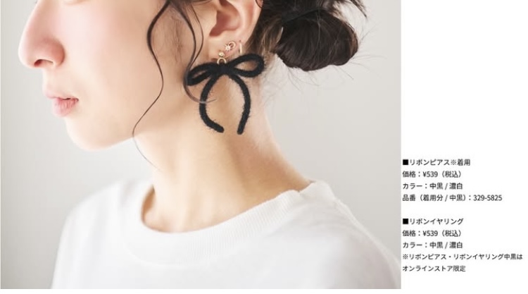アクセサリーも値下げ商品はあまりありませんでした。辻ちゃんこと辻希美さんブランド・Ange Charme(アンジュシャルム)の去年8月に発売されたリボンネックレスが黒、白とも税込¥330、リボンイヤリング黒¥330、リボンピアス白¥330に値下げされていたのですが