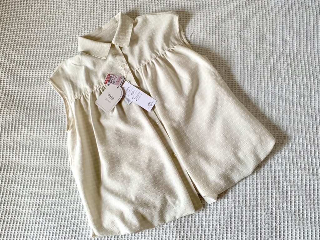 田中里奈さんでおなじみmysa closet(ミーサクローゼット)のお洋服を初購入☆こちらは2025年5月発売のブラウスで田中里奈さんのインスタで見た瞬間から欲しい!と思っていたのですが、自宅から3番目に近い店舗で出会うことができました(笑)。インスタでは白に見えたのですが実物はベージュ味が強かった…。でも試着してみたらいい感じ☆