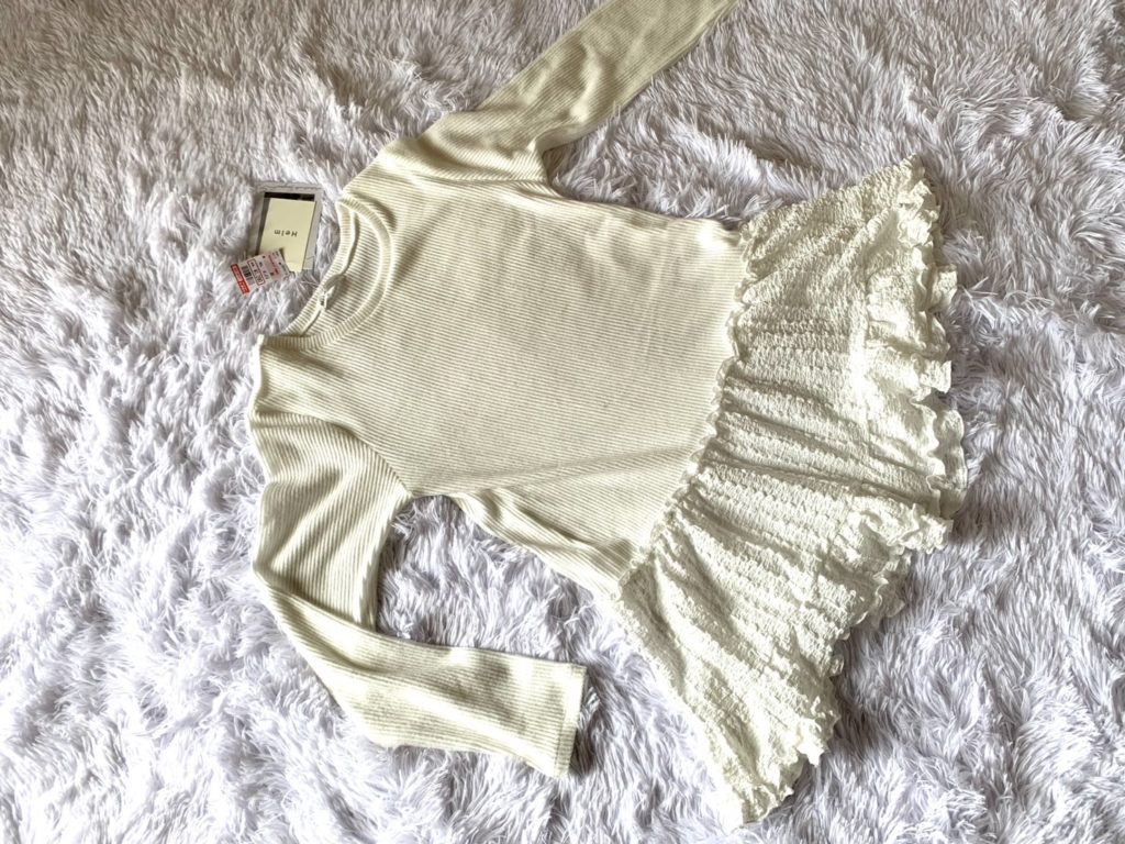待ちに待った私の推し・Taiyouさんコラボの新作☆Helm×Taiyouは今年の2月以来の発売ですね!Taiyouさんのインスタで見た時はスルーしたこのトップス。上記のHelmカーディガンと合わせてみたらかわいくて購入しちゃいました。裾のフリルが太腿とお尻をカバーしてくれてありがたい☆20年位前、流行していたチュニックの重ね着で太腿とお尻をカバーしていたのですが、この丈のトップスはその時以来の購入かも!最近は重ね着を「レイヤードスタイル」って呼ぶんですね。