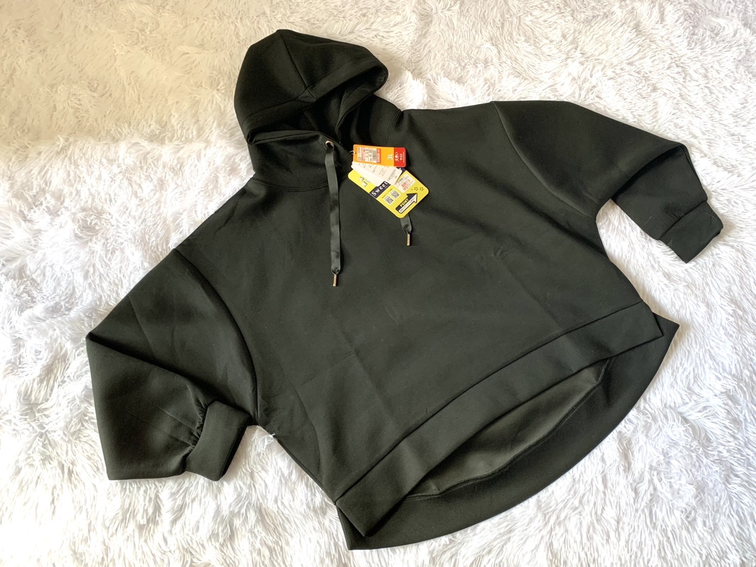こちらのパーカーもおかだゆりさんコラボ“Sweet Fleur”でグリーントップスと同じ発売日。9月のしまパトでは完全スルーしていましたが、遠出した先の店舗で何となく試着してみたら…あらあら良い感じ☆ダンボール素材で着心地抜群☆☆フードが大きめでしっかりしている&紐がリボンテープのような素材でかわいい☆☆☆