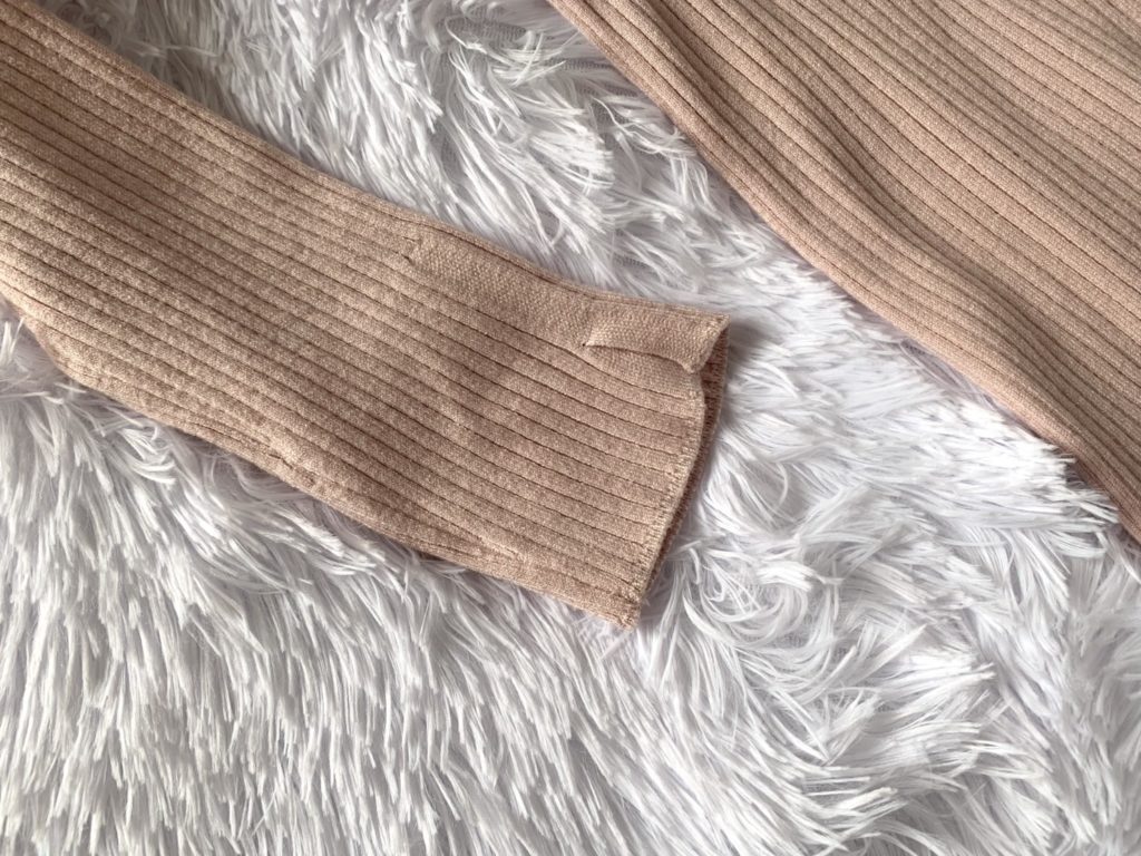 ニットですがチクチク知らず!袖口にはスリットが入っています☆