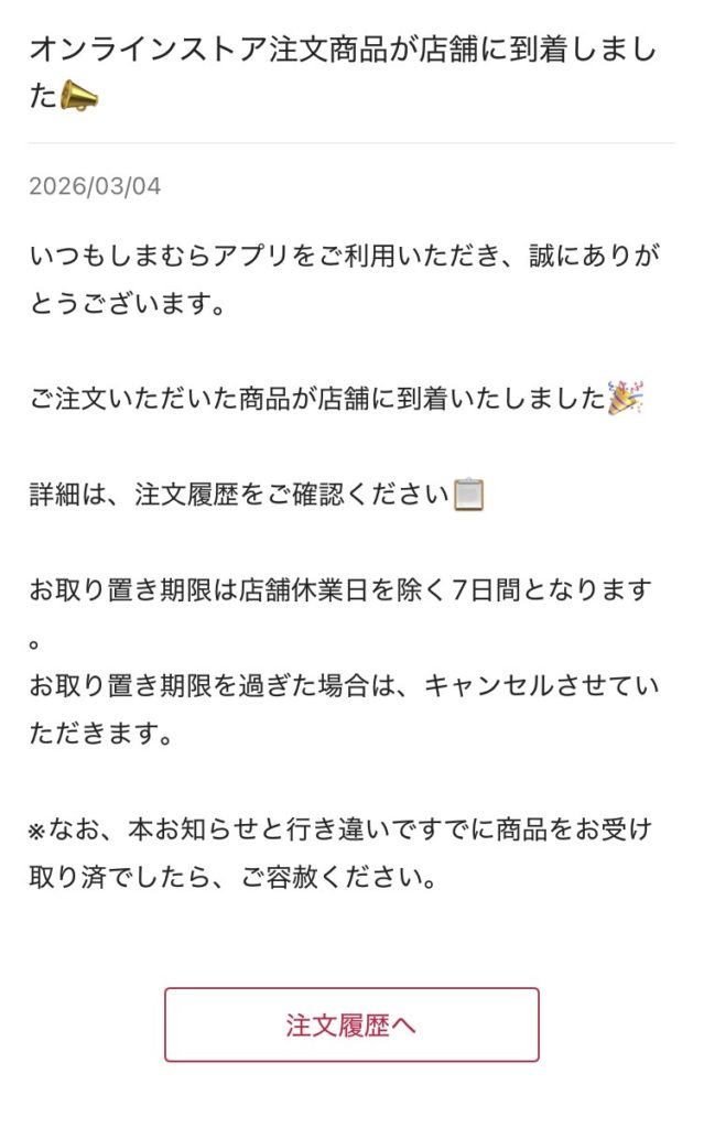 (画像はしまむらアプリより拝借、注文番号は一部消しています)