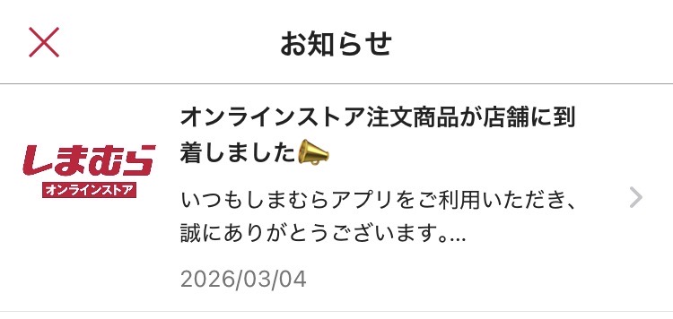 3月4日、しまむらアプリに通知が来ました☆購入時の発送予定時期は3月上旬〜下旬だったので思ったより意外と早く届いて嬉しい!